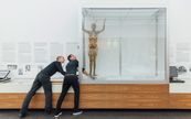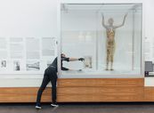 Letzte Handgriffe: Restaurator Jakob Fuchs (Deutsches Hygiene-Museum) und sein Team beförderten die Gläsernen Frau von 1935/36 sicher in die neue Klimavitrine.