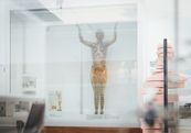 Besucher betrachten die Gläserne Frau von 1935/36 in der neuen Klimavitrine.